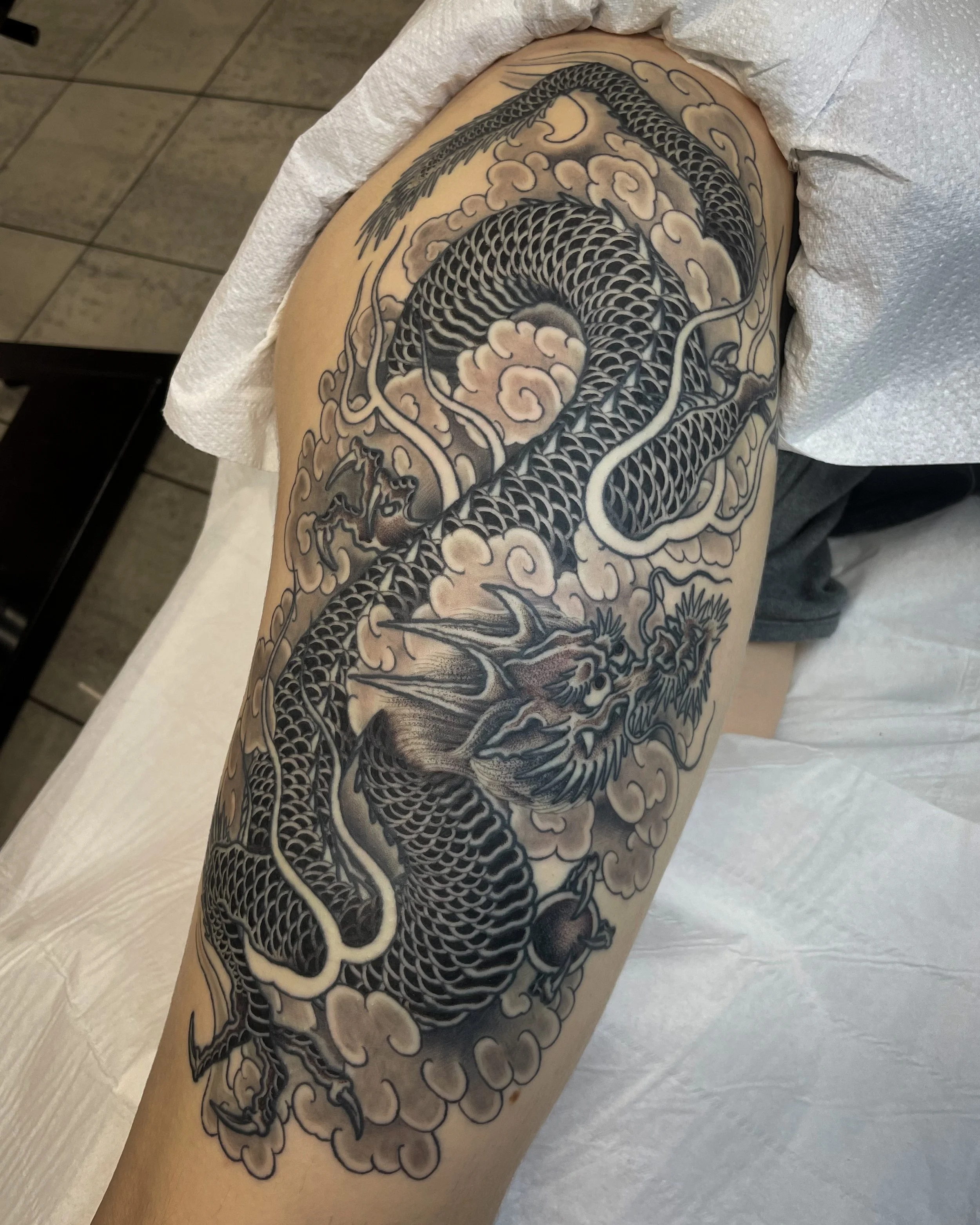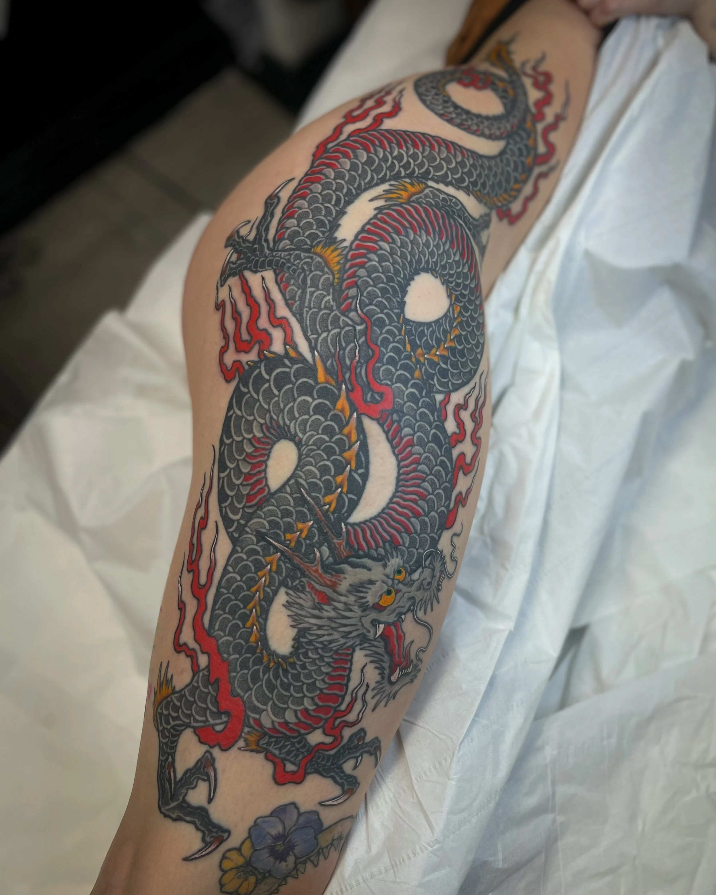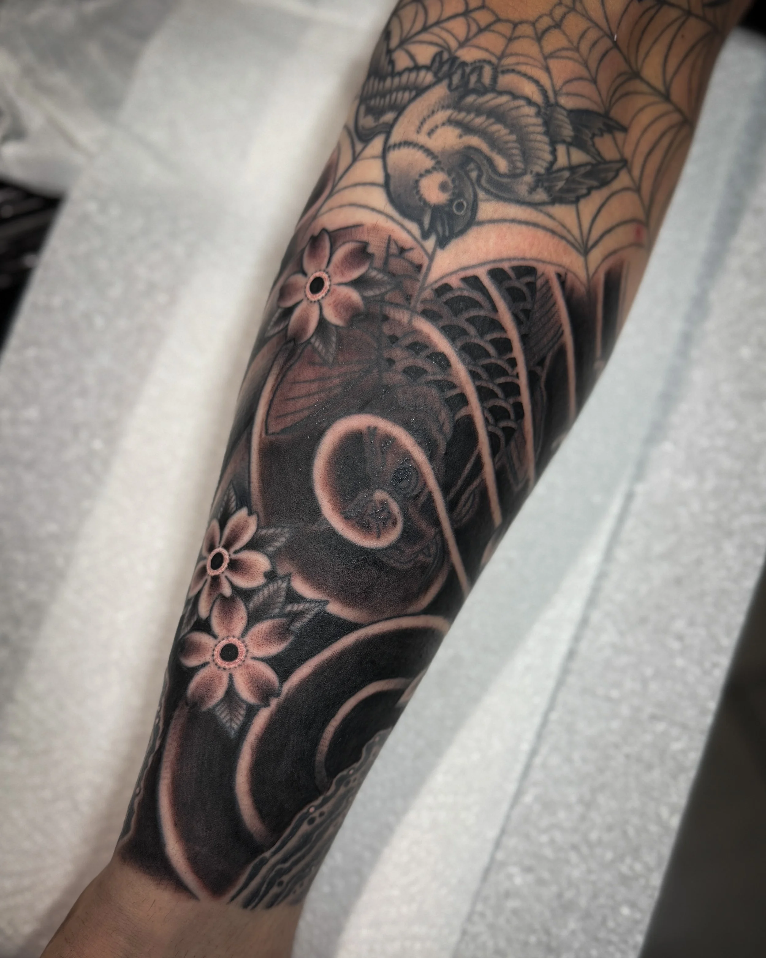 My fascination with Japanese tattooing and artwork began in childhood. My dad grew up in the Far East, so our home was filled with Asian art and ornaments — influences that undoubtedly sparked my passion for this rich and expressive style from an early age. Just as with Western traditional tattooing, I hold deep respect for the history and legacy of Japanese tattooing, which continues to inspire me every day.